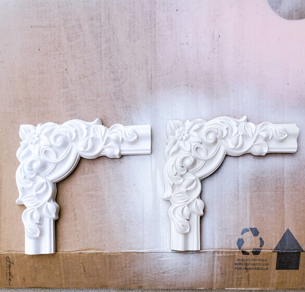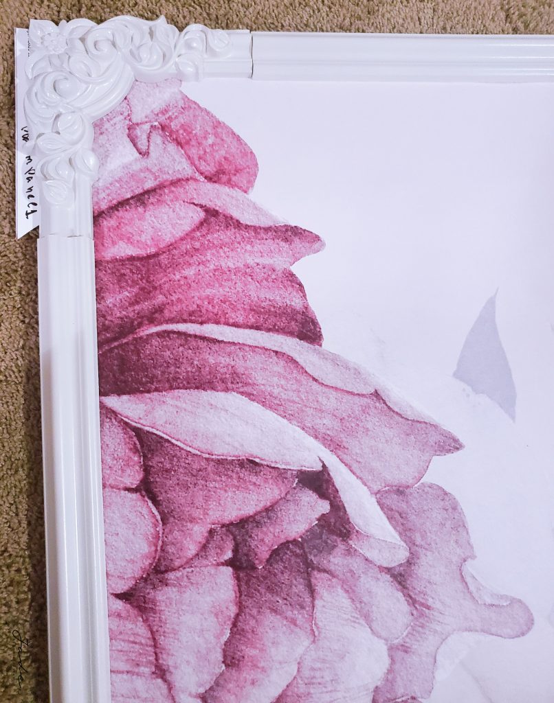 I want the frames to pop without really competing with the wallpaper and I think it’ll work, I hope. I did a flat lay to see what the wallpaper looks like with the painted frames and I think it might work. I’m very nervous about this and I can’t wait to see it up on the wall. Fingers crossed I don’t hate it. Wish me luck!