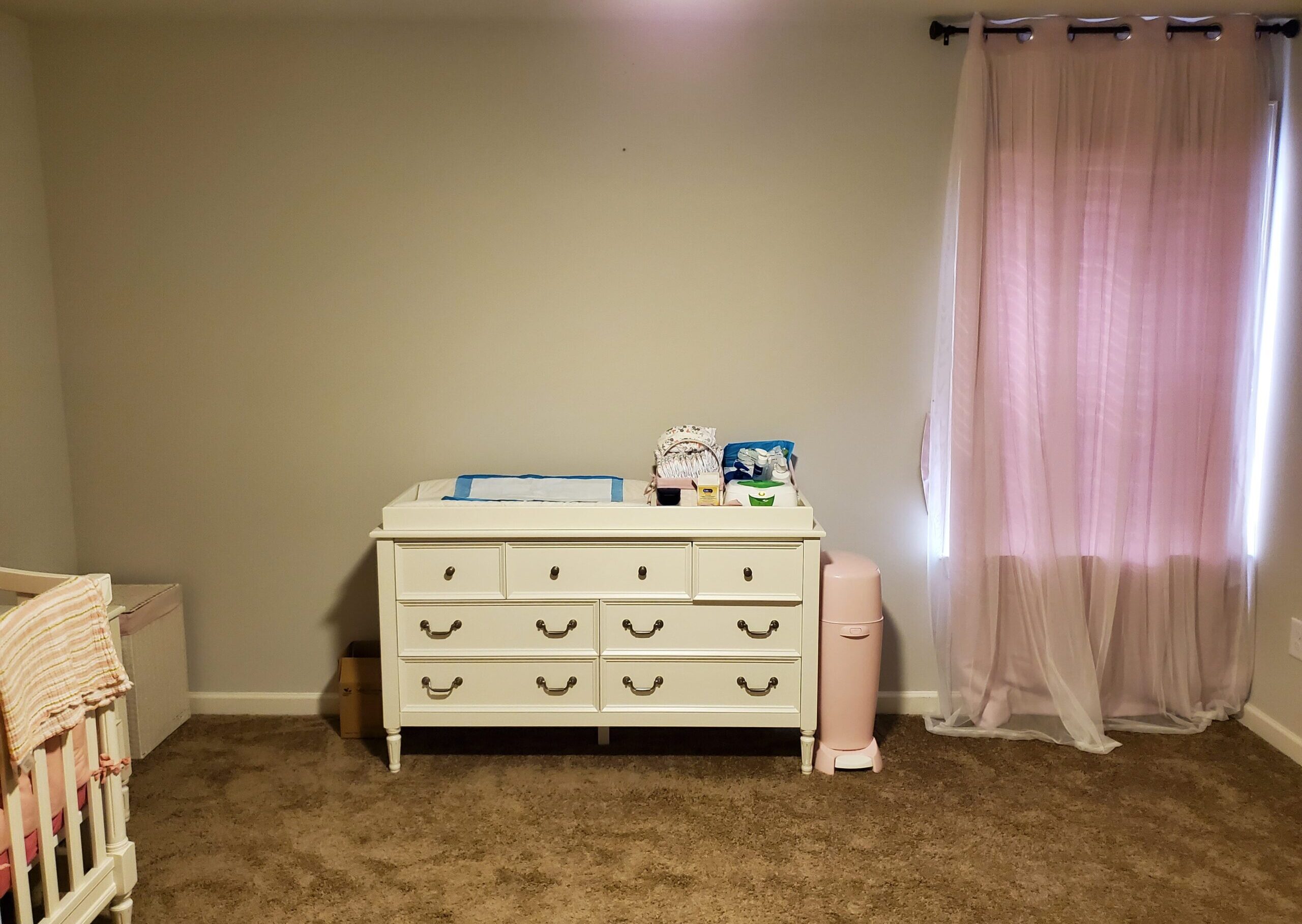 I got inspired by a pottery barn image of her crib and I delved into a world of framed wallpaper research. I have documented extensively my process in my previous post if you’re curious to see how I executed this.