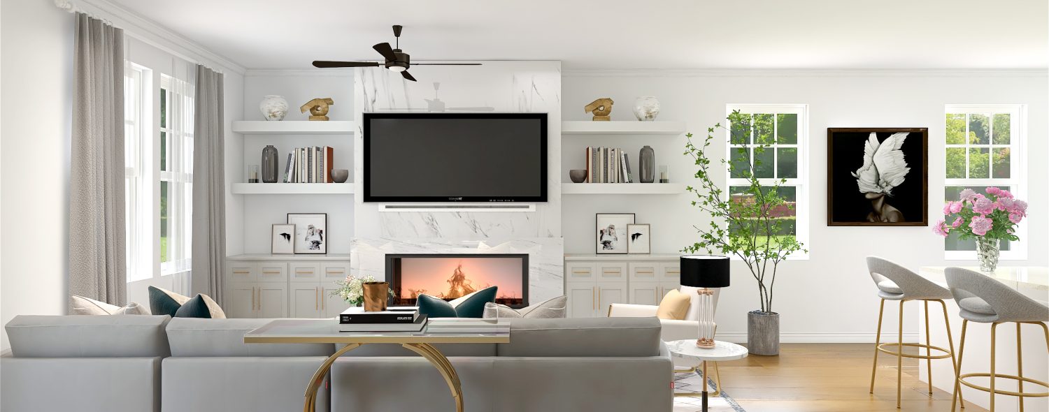 New build homes are one of my favorite spaces to work with. This client reached out to us when their home build begun to upgrade their builder grade home. We designed the first floor with unique touches like a fireplace feature in the living room and the wall panel in the dining room. This home is definitely a showstopper so keep an eye out because there is a lot more to come on this project.